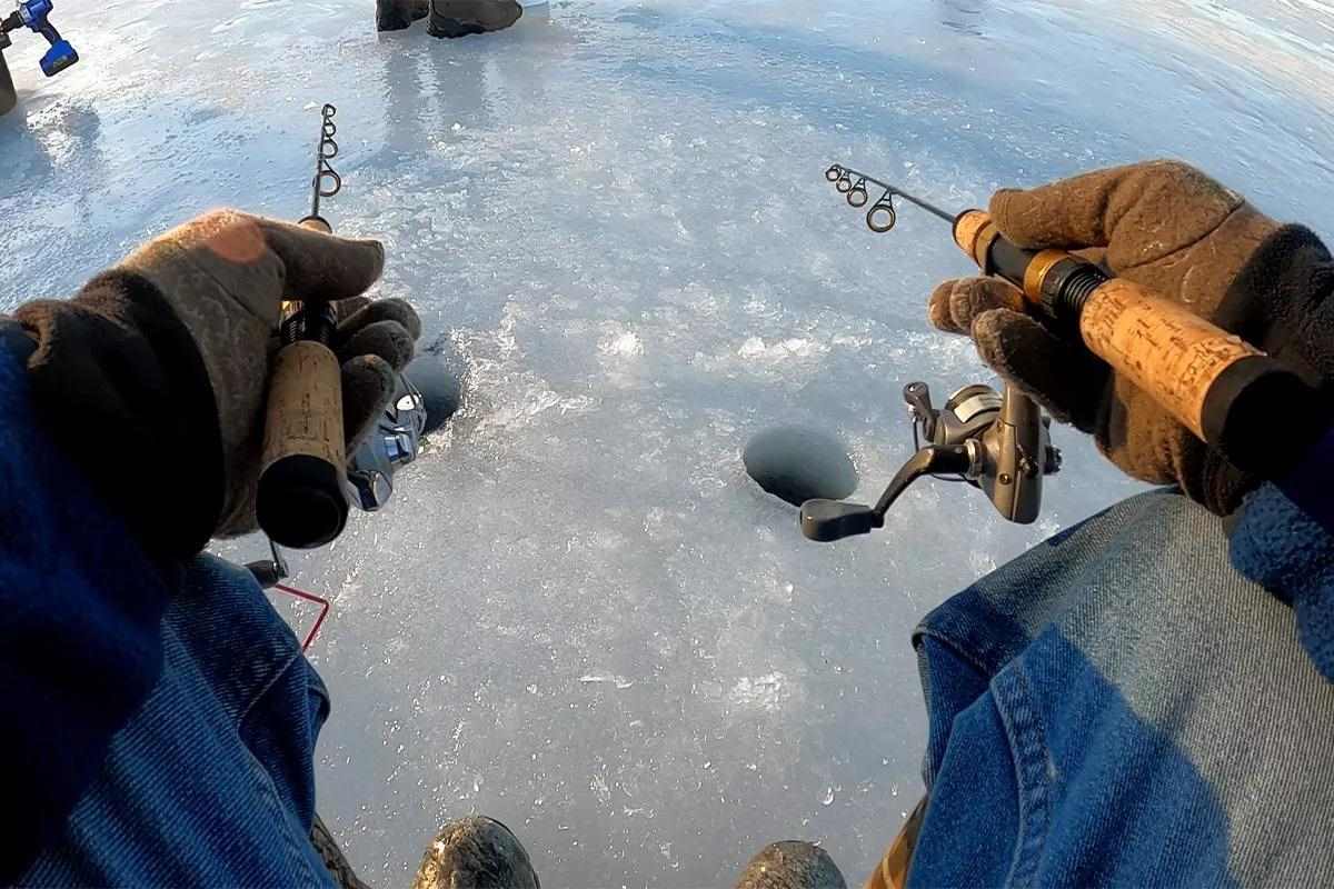 Adding spring bobbers to our rod tips increase our catch rates immensely. (Photo courtesy of Bob Humphrey) Our initial expeditions were mostly mid- to late season, when many fish have entered their winter torpor and bite reluctantly. This year we made it out early and found fish a lot more eager to bite baits. The traps kept pace with jigging and increased the variety of our catch. We caught bass, pickerel, and even broke off a couple big pike. We’ll be even more prepared next time.